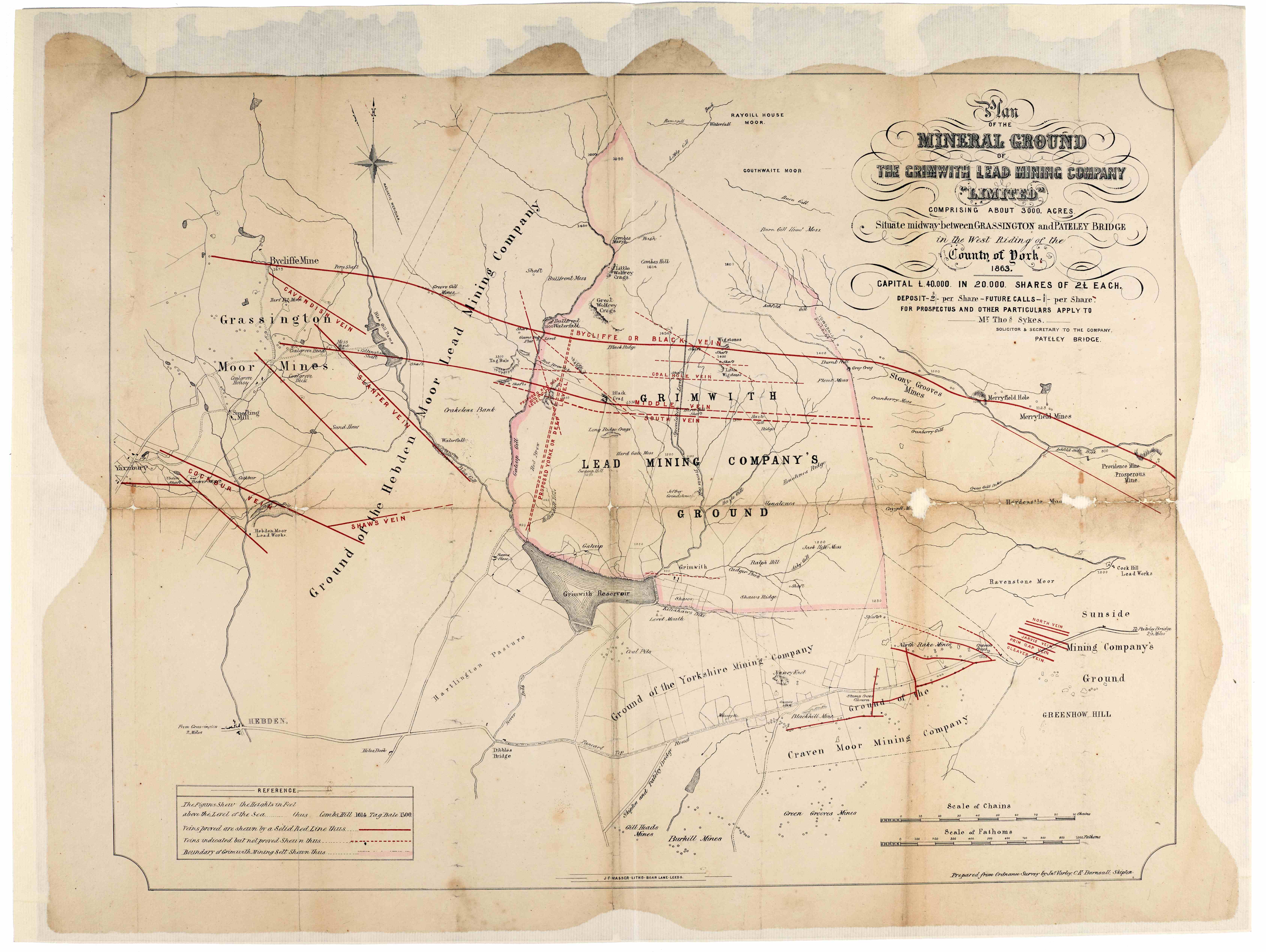The veins are shown on the plan from 1863, with the extent of Red-Scar level shown in 1872.