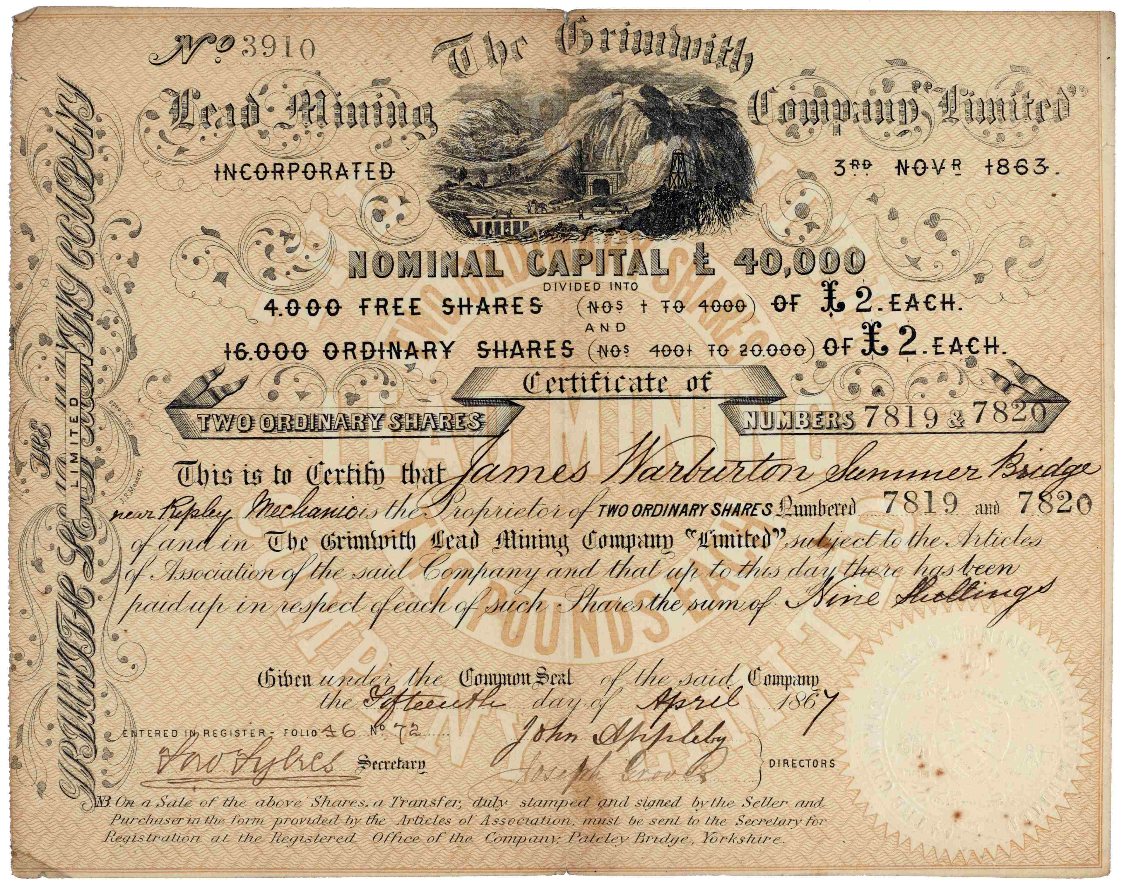 Grimwith Lead Mining Company Records, 1863-1874 [Z.304]