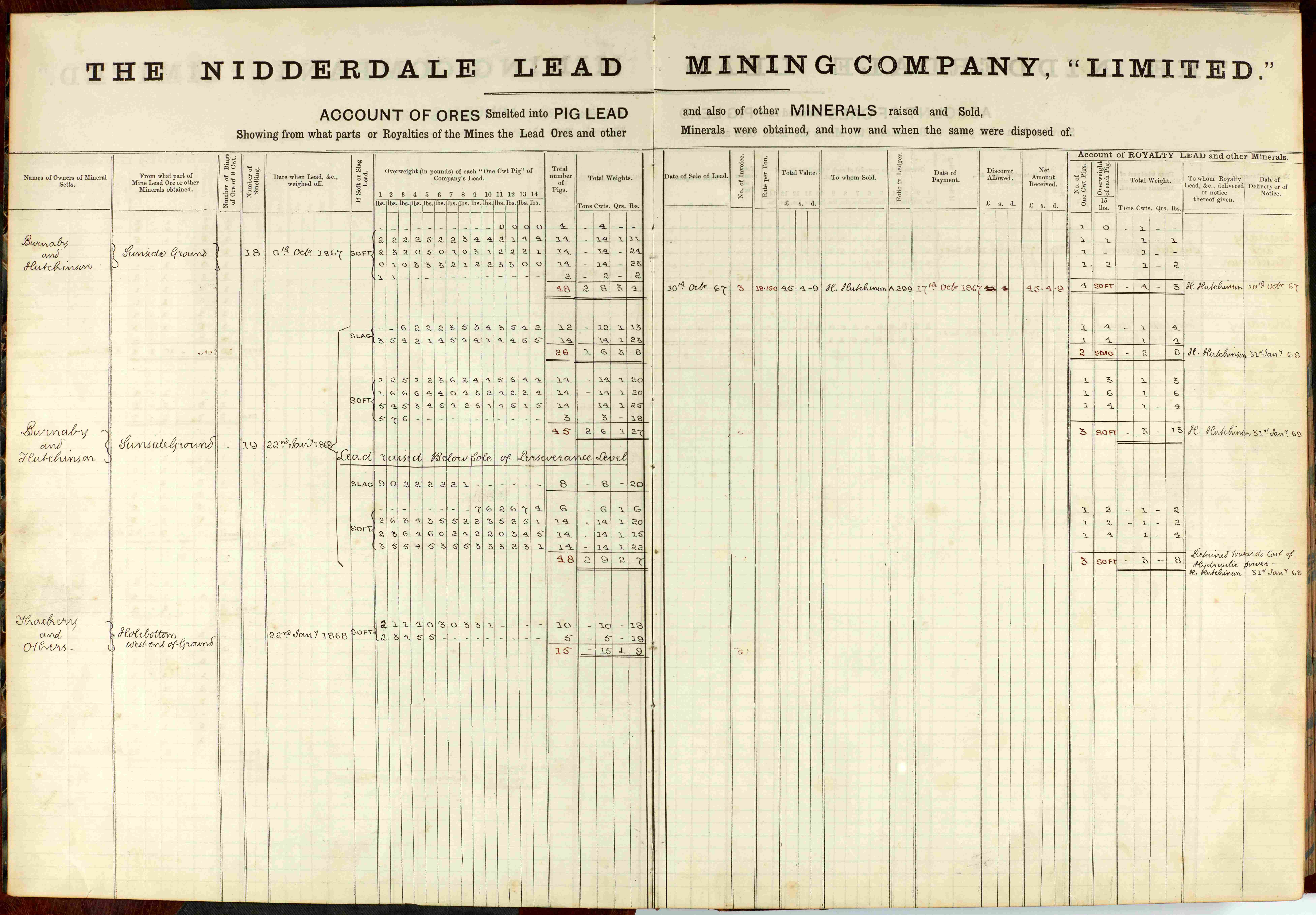 - Right: Nidderdale Lead Mining Company, account of ores and minerals, 1866-1868. Nidderdale Lead Mining Company operated the Prosperous Lead Mine, Bewerley, during 1860s and 1870s [Z.737]
