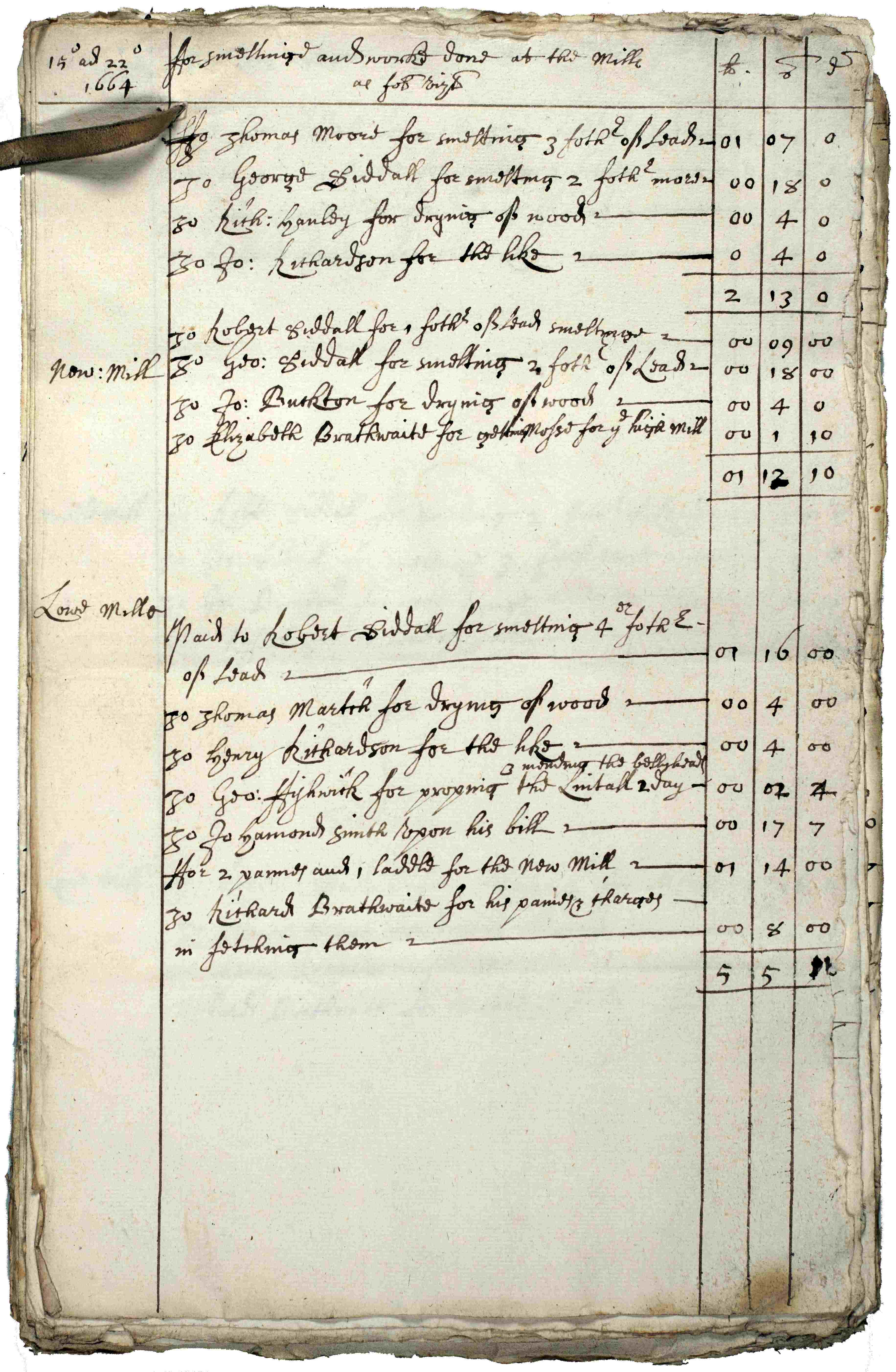 - Left: Accounts for smelting and works carried out at the Duke of Bolton’s lead mills, 1664 [ZBO V]