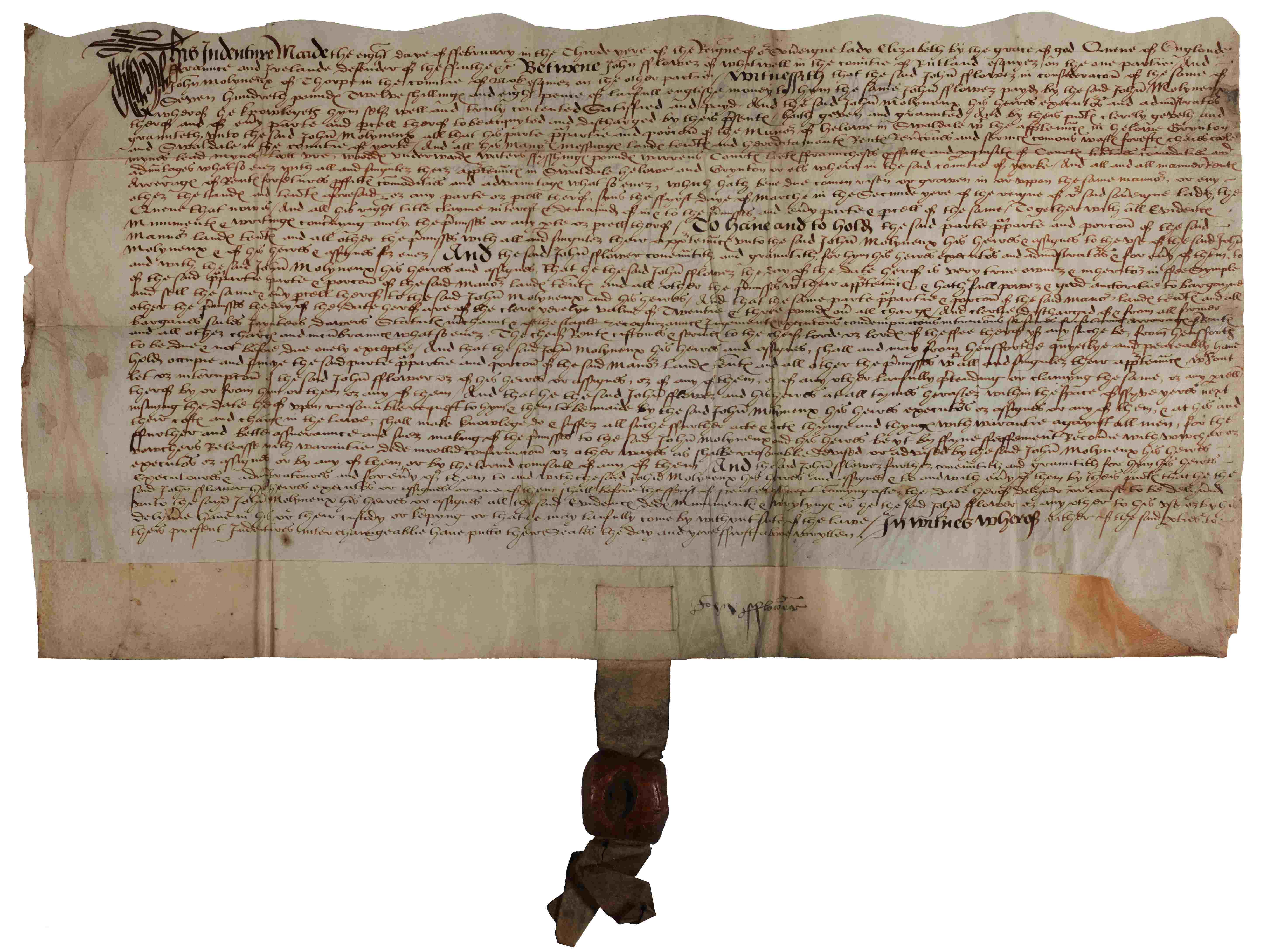 - Right: Counterpart lease for 10 years for mines in the parish of Grinton in Swaledale, 30 Dec 1561 [ZLK 1/1]