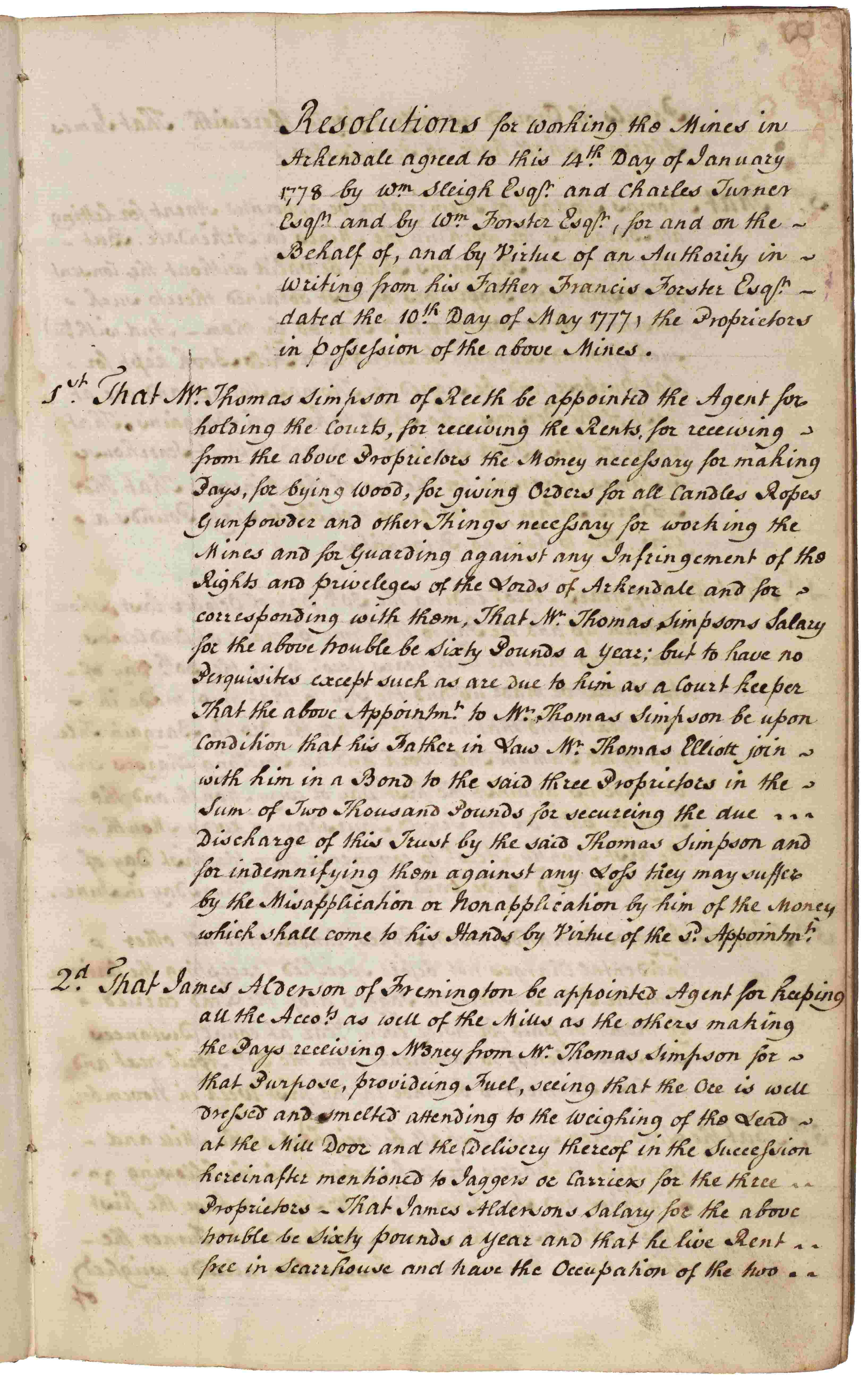 Bargain books record the agreements made between miners and the mine owner for working a promising piece of ground. Payment was by measured work at an agreed rate or was calculated on the ore produced. By the end of the 18th century the majority of the miners in the Yorkshire Dales were working by bargain work.