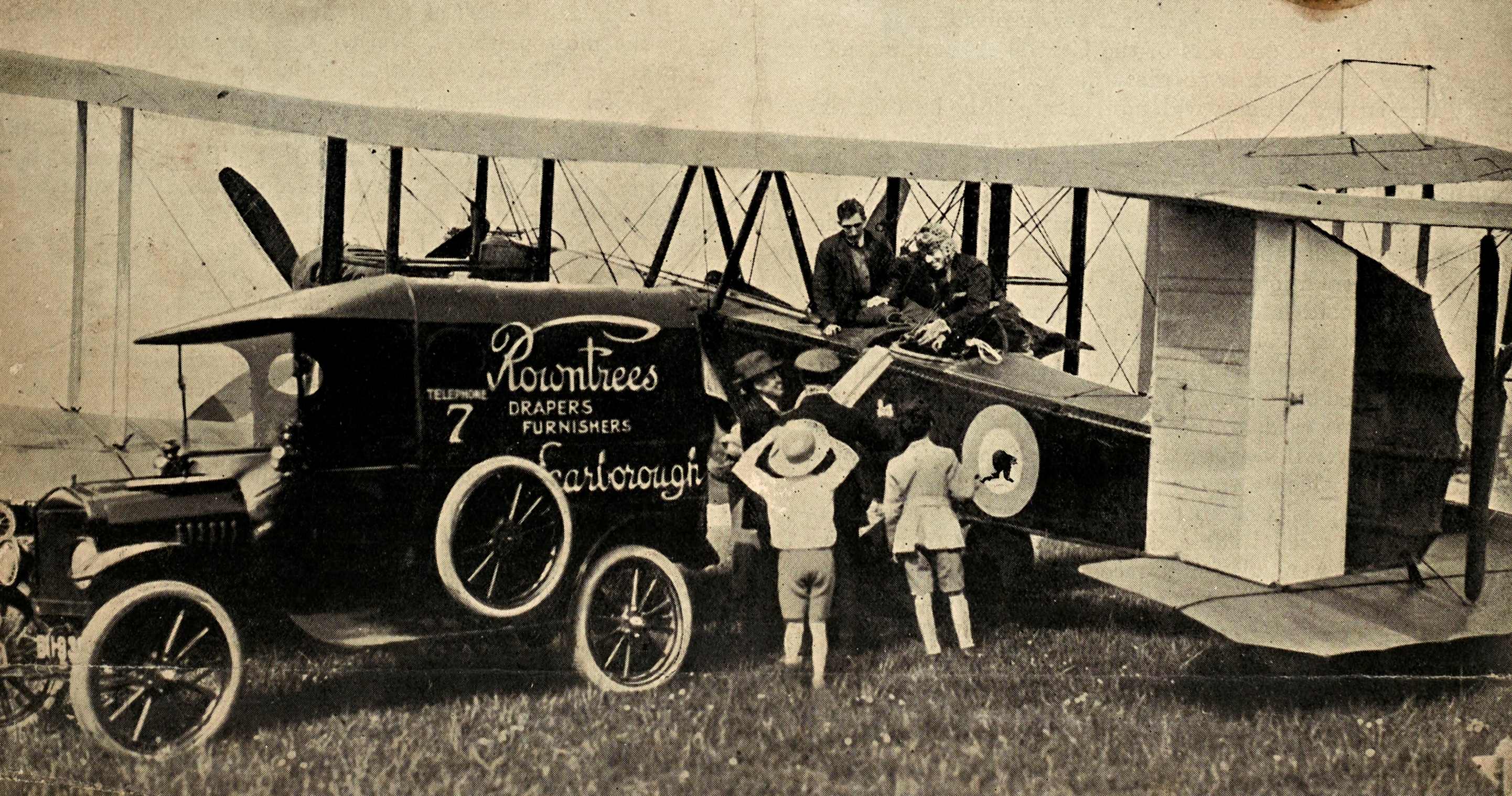 Rowntrees was the first business in Scarborough to make use of the commercial possibilities of the aeroplane. They received their first batch of goods (gowns and blouses) by air on 5 June 1919.