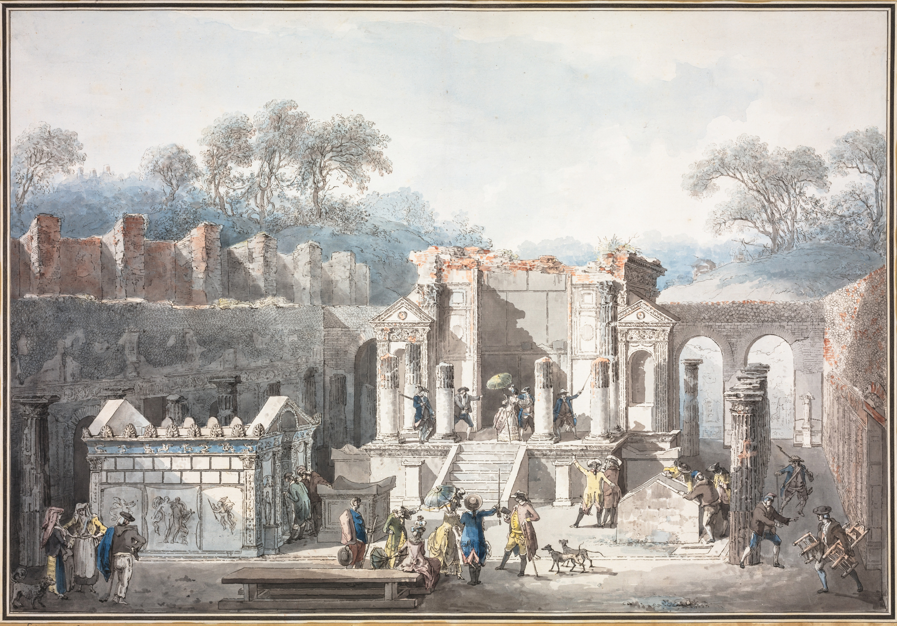 There was great excitement throughout Europe as these buried cities were gradually uncovered. The new discoveries were documented in the 1770s by artists such as Piranesi and by Sir William Hamilton, who commissioned a series of twelve drawings sent to the Society of Antiquaries in London. Such drawings fuelled a revival of interest in antiquity and the classical world, which had a profound influence on 18th-century art, architecture and interiors in England and beyond. No British Grand Tourist’s visit to Italy would be complete without a visit to Pompeii and Herculaneum well into the 19th century.