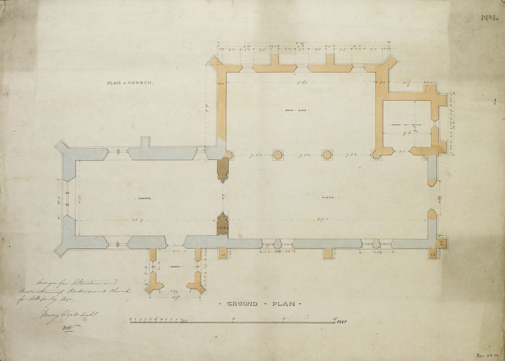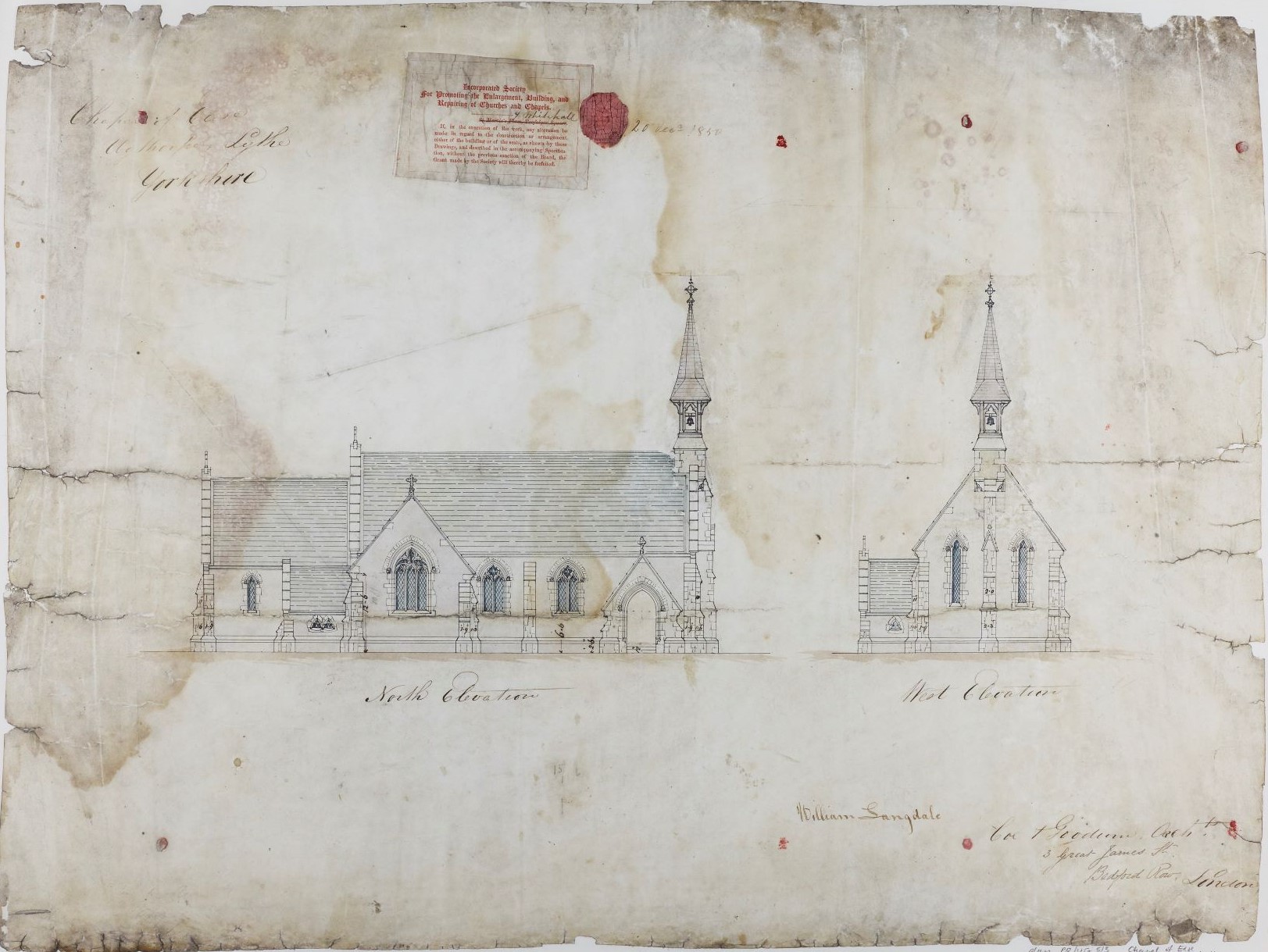 The majority of architects’ drawings of churches in the Record Office collections date from the 19th and 20th centuries, although some survive from the 18th century.