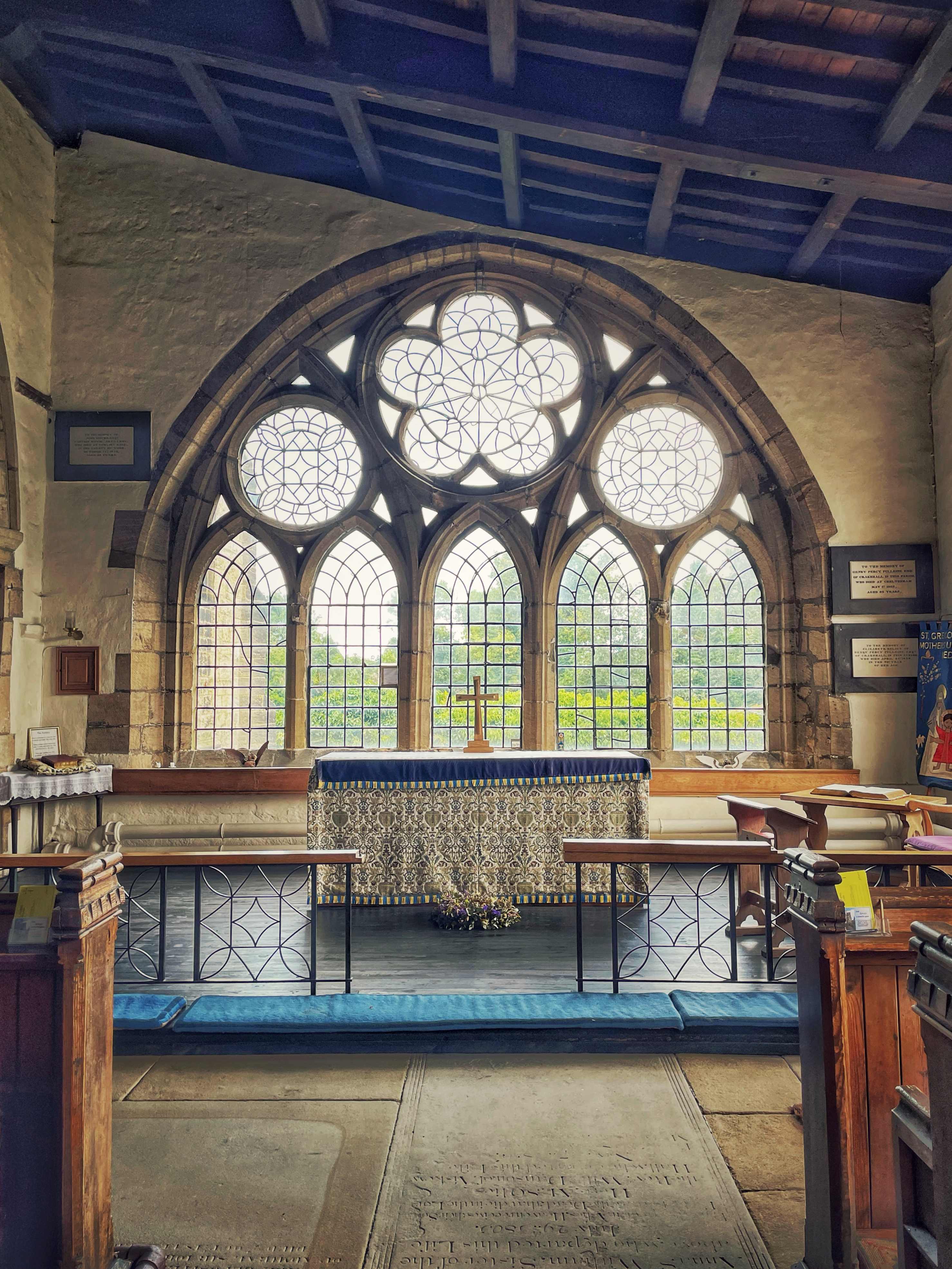 The east window of the south aisle is a bit of mystery! It may have come from Jervaulx Abbey, or it might have been part of the original FitzAlan chantry chapel and designed to hold glass displaying the family’s coat of arms