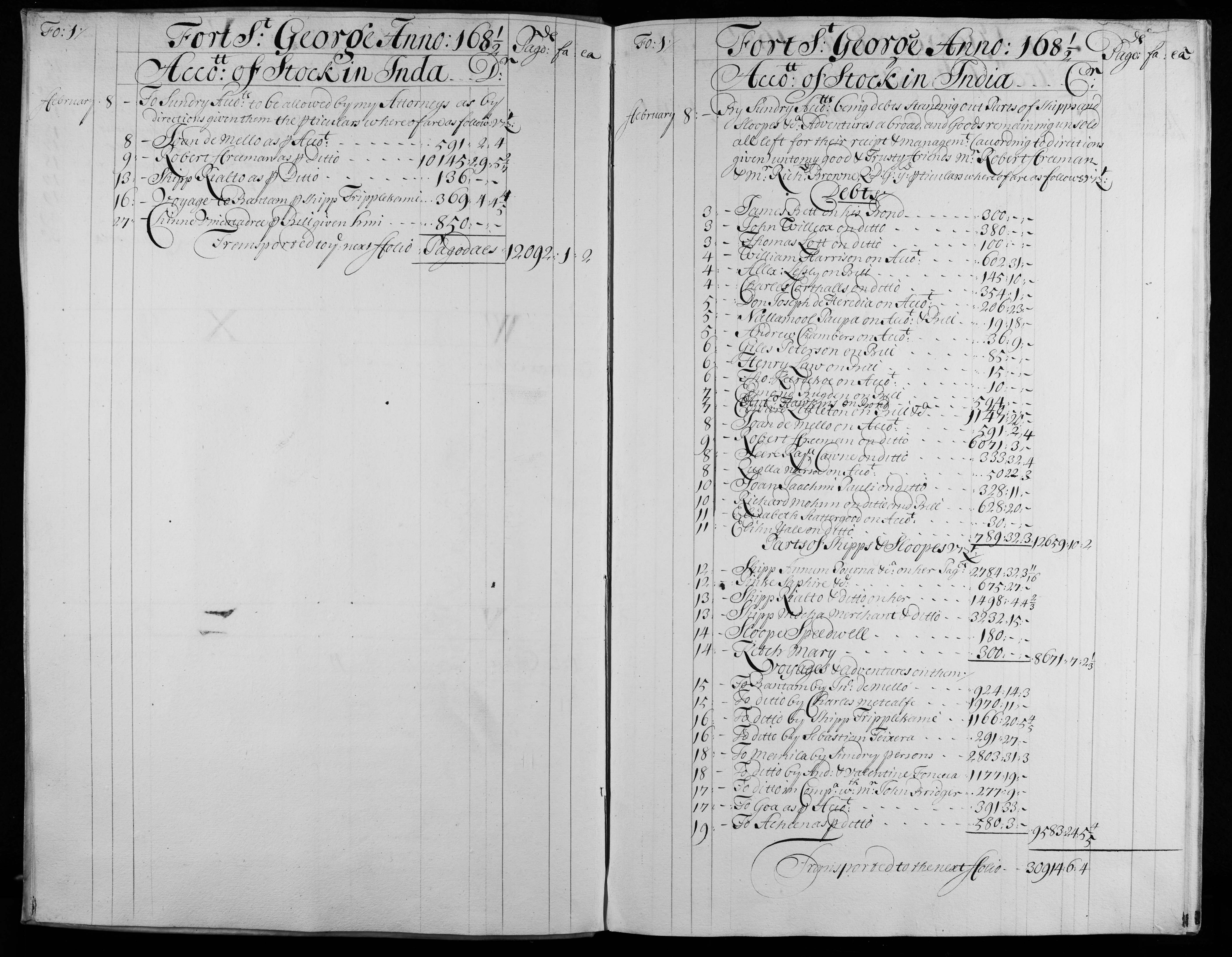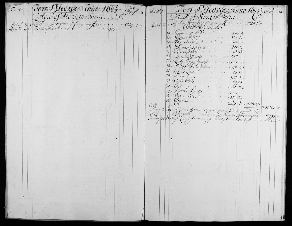 - L: Account of Nathaniel Cholmley’s stock in India showing coastal ships,