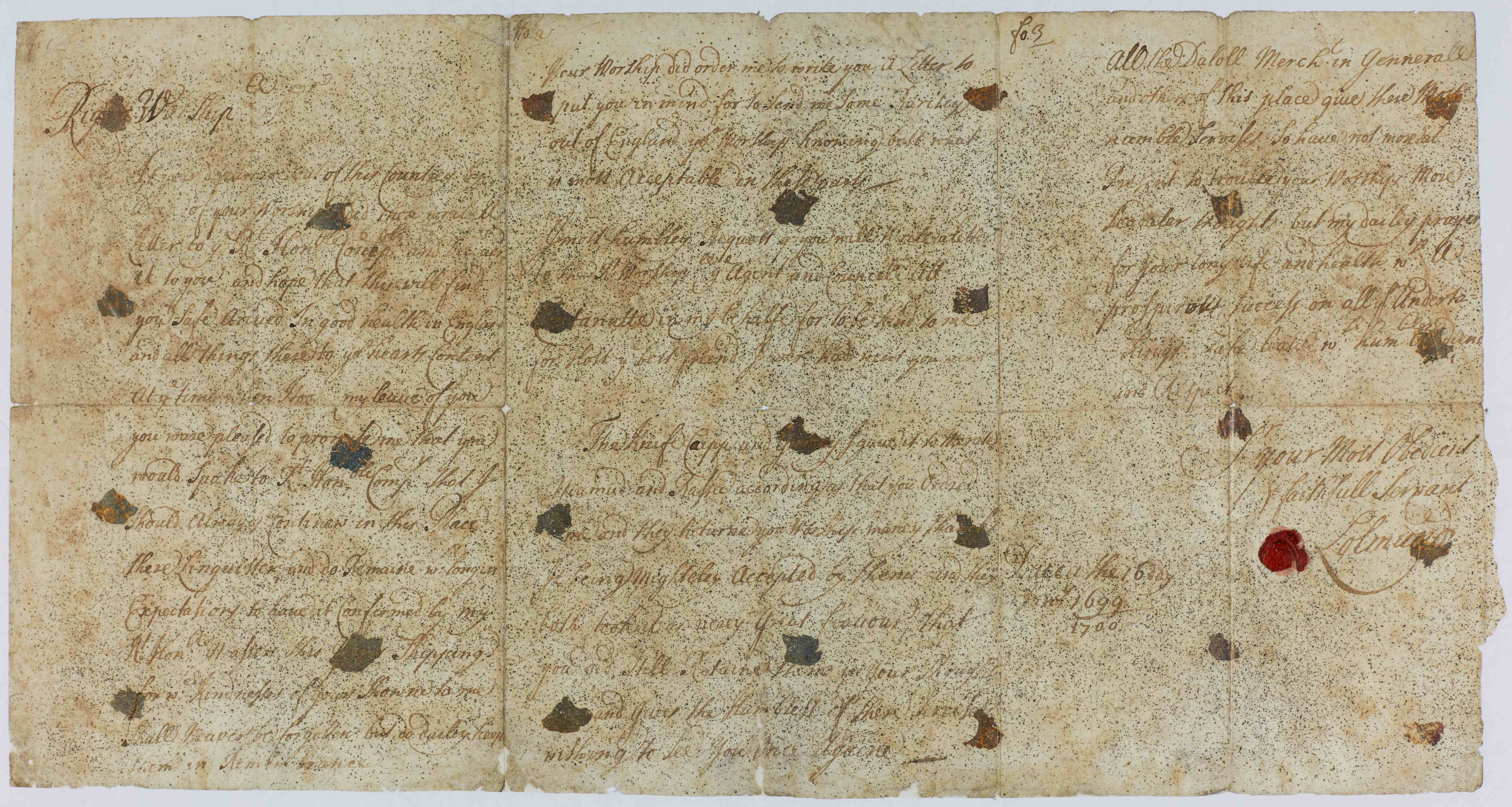 The letter is beautifully written with only glowing sentiments regarding the recipient, who unfortunately remains a mystery. Lolmund refers to them as ‘the best friend I ever had’ and that the kindness they showed to him will never be forgotten. They seemed to have returned to England, possibly quite recently at the time of writing, as Lolmund hopes they arrive safe in good health and wishes ‘all things these to your hearts content’. Lolmund refers to them as ‘Your Worship’ and signs off the letter as ‘Your most obedient and Faithful servant’.