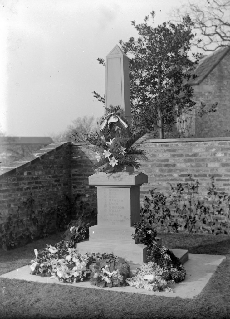 Many parishes erected a war memorial to commemorate those who died in the First World War (1914-1918). These often took the form of a stone cross or obelisk bearing the names of those who died in the service of their country. Most of these memorials were erected by public subscription and some were placed in parish churchyards, such as the example from Masham below, which required a faculty authorisation to do so.