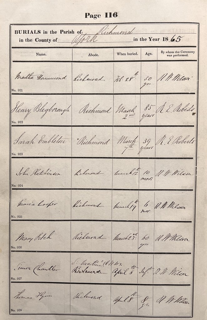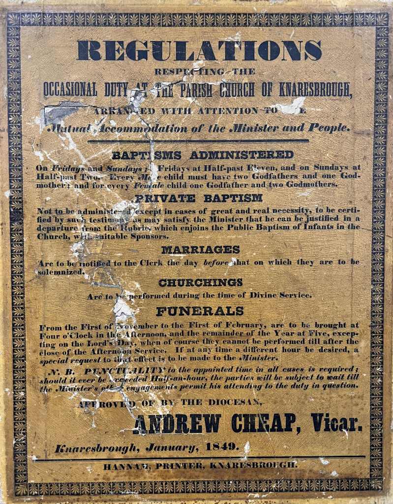 Each church had regulations for burials. In Knaresborough, in 1849, for example: