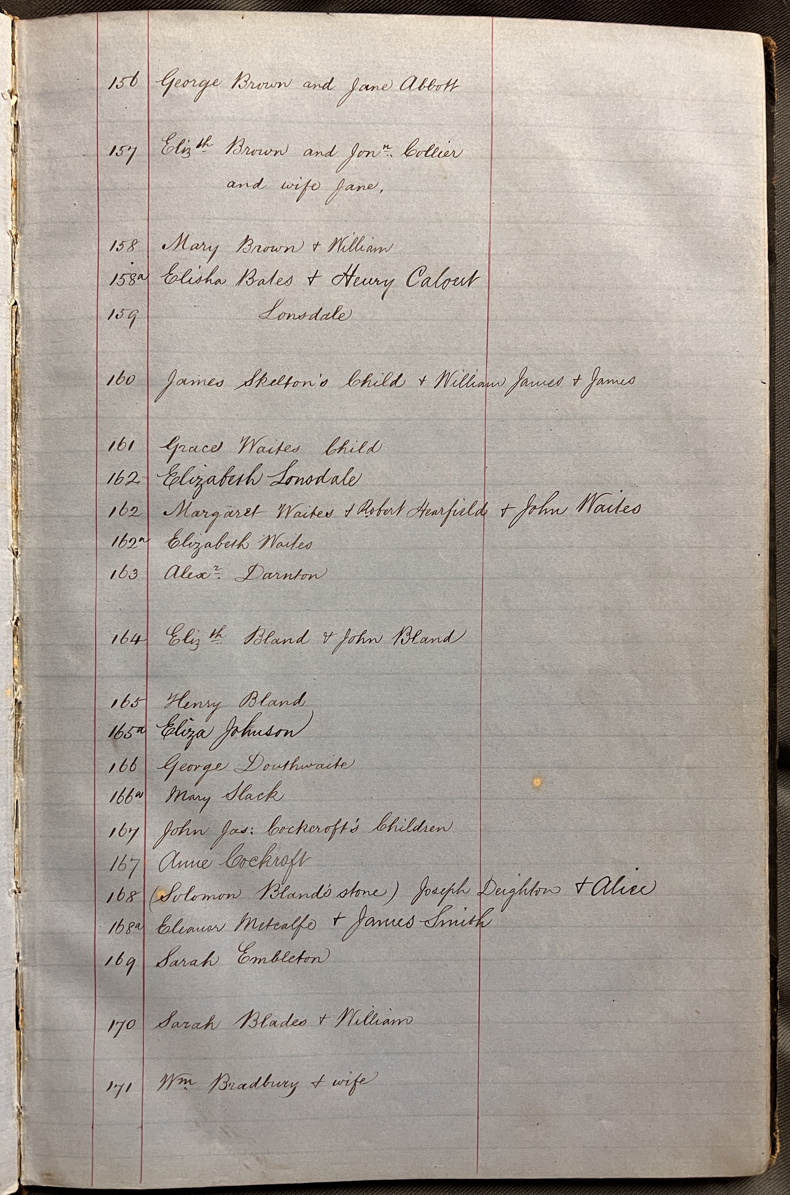 Due to lack of space in the churchyard at Richmond, St Mary, William Legat, a land surveyor, was employed by the Borough to survey the area to determine where they could place more grave plots [PR/RM 9/4/6]. He numbered the existing grave plots on the plan, and listed all the related names both alphabetically and by plot number in an associated reference book [PR/RM 9/4/5].