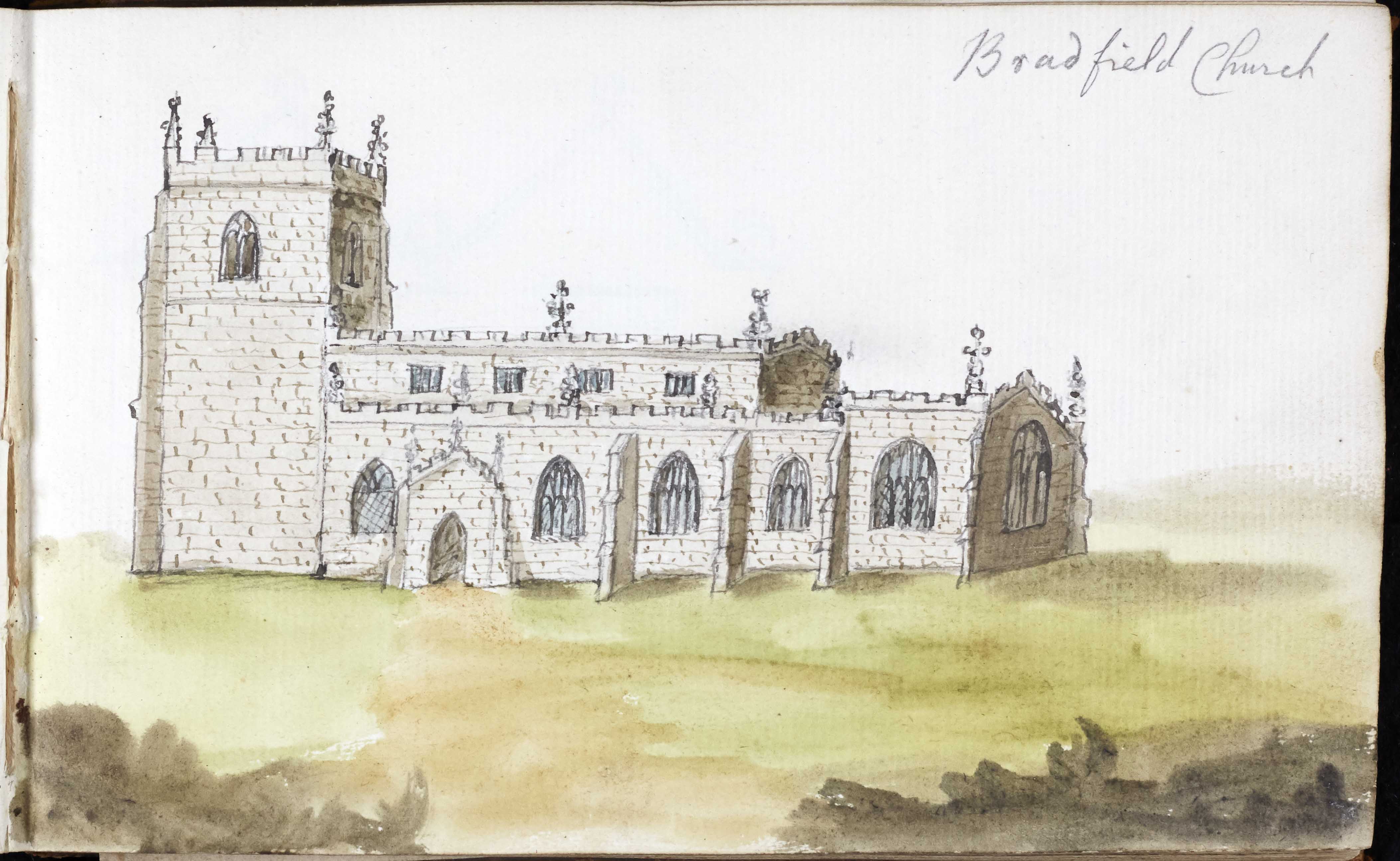This leather-bound sketchbook contains drawings and watercolours of churches around York and Yorkshire [ZTJ 23/1]. Many of the drawings are dated 1779 and some are signed by T. Beckwith, although we do not know any more about the artist.