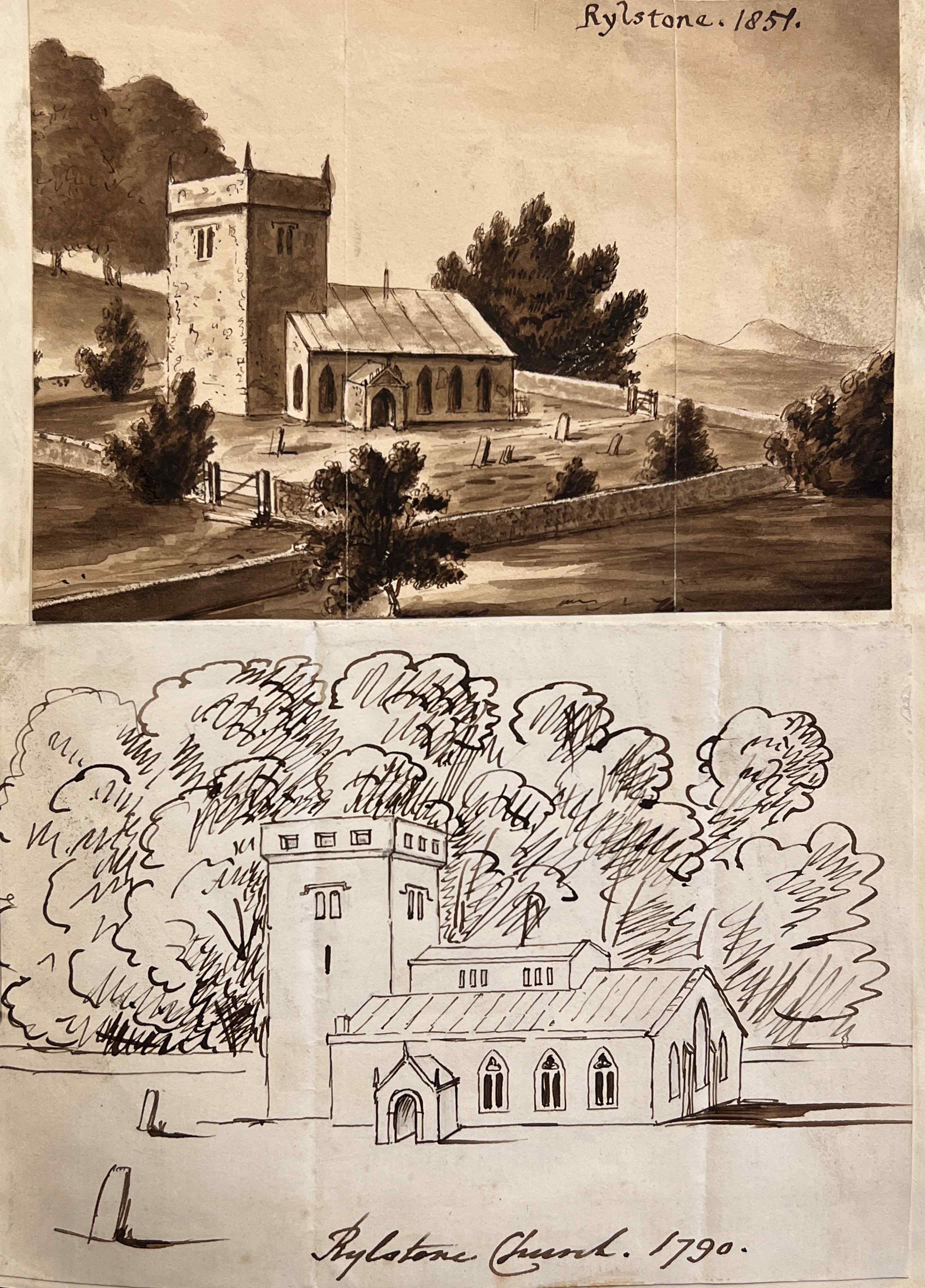 The Burnsall manuscript, containing drawings by the Revd Bury of Rylstone, St Peter: exterior views dated 1790 and1851, and interior view of 1841 [Z.1570]