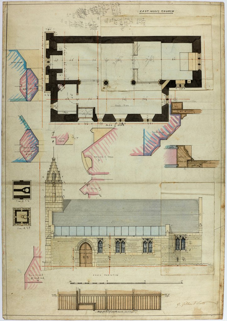 The Helmsley, All Saints’ parish record collection contains a range of material relating to both East Moors church (also written as Eastmoors) and school. This includes architectural drawings by both George Gilbert Scott Jnr and Temple Moore [PR/HEL].