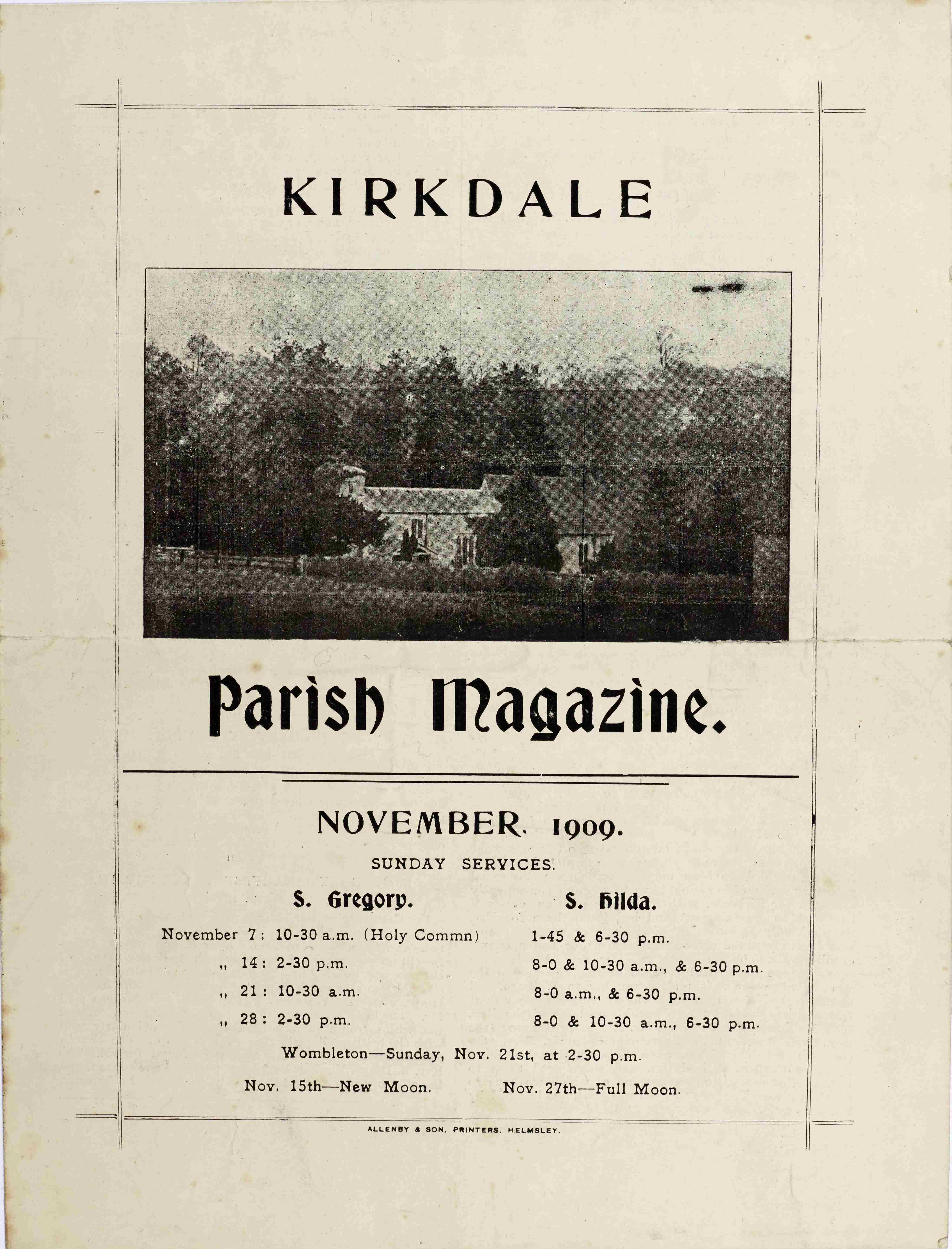 Faculty for the restoration of the church, 2 March 1909 [PR/KRD 7/1/1]; pages from the Kirkdale parish magazine, November 1909