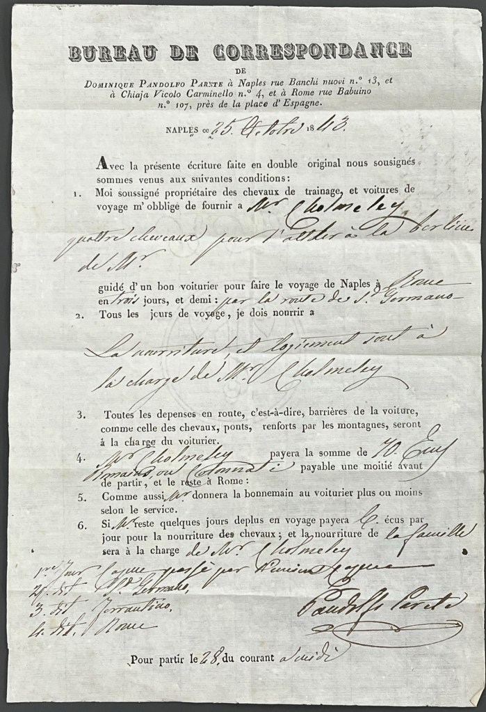 - D.P. Parete’s contract for transport from Naples to Rome (French), 25 Oct 1843 [ZQG X11 12/6/25]