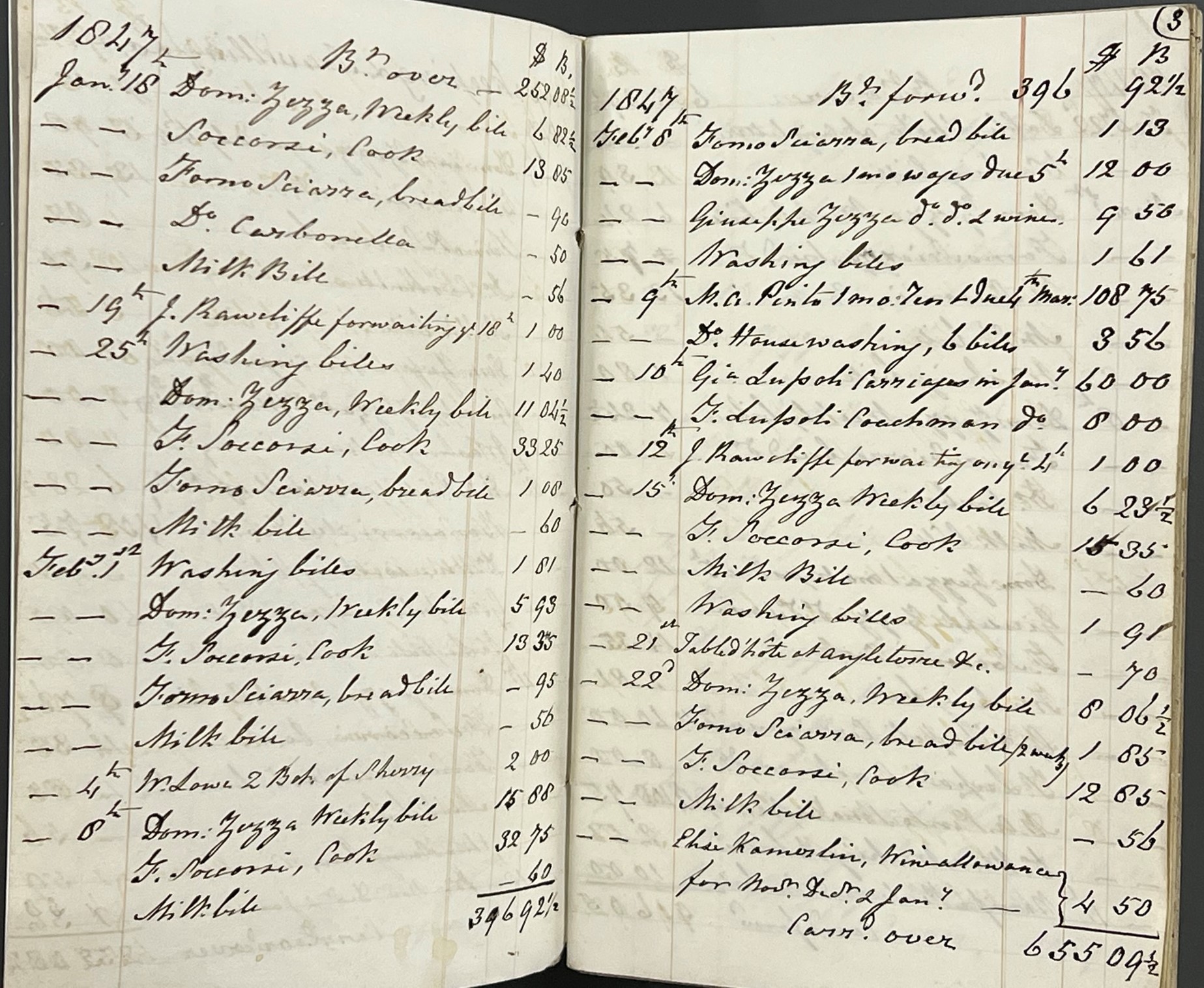 Daily expenditure included payments for the hire of coachmen and carriages, the cook’s bill, the washing bill, as well as bills for bread and milk.