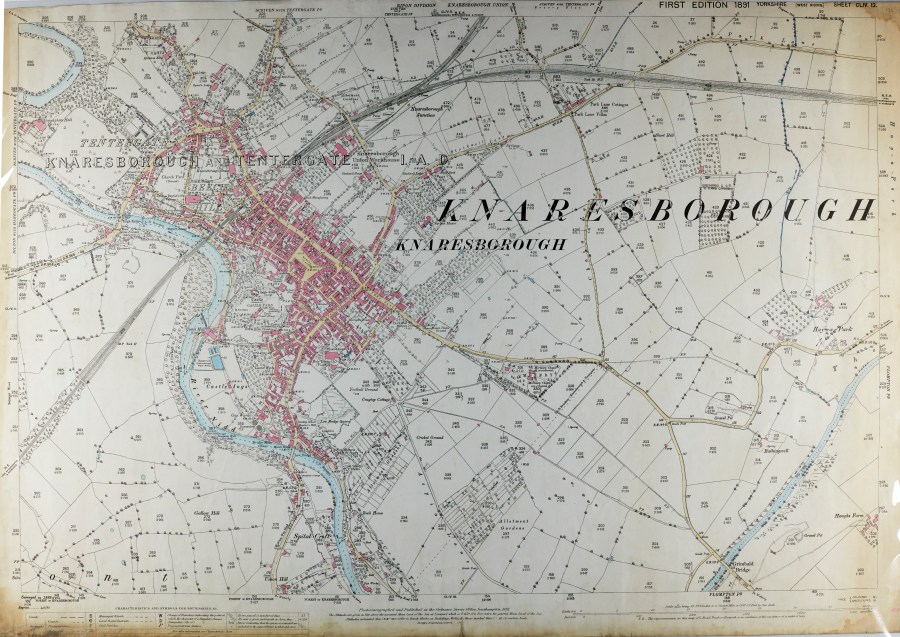 Three Ordnance Survey map sheets for the town of Knaresborough: