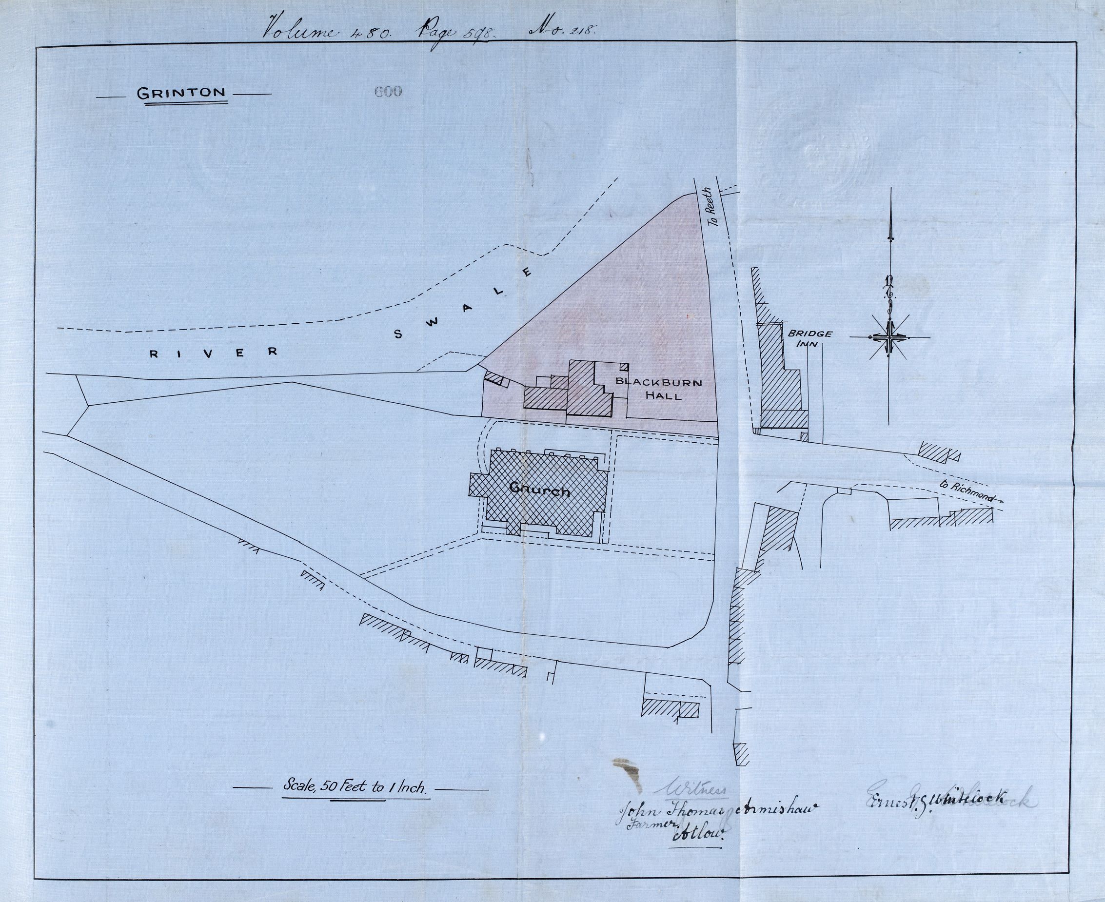 | The names of the people (parties) involved | Ernest George Whitelock, of Ashbourne, County of Derby (vendor) Marmaduke Clarkson of Satron near Reeth, Gentleman & Frederick Joseph Edward Peacock of Reeth, Gentleman (Trustees) Albany Kennett Charlesworth of Grinton Lodge, Richmond Esq. (purchaser) |