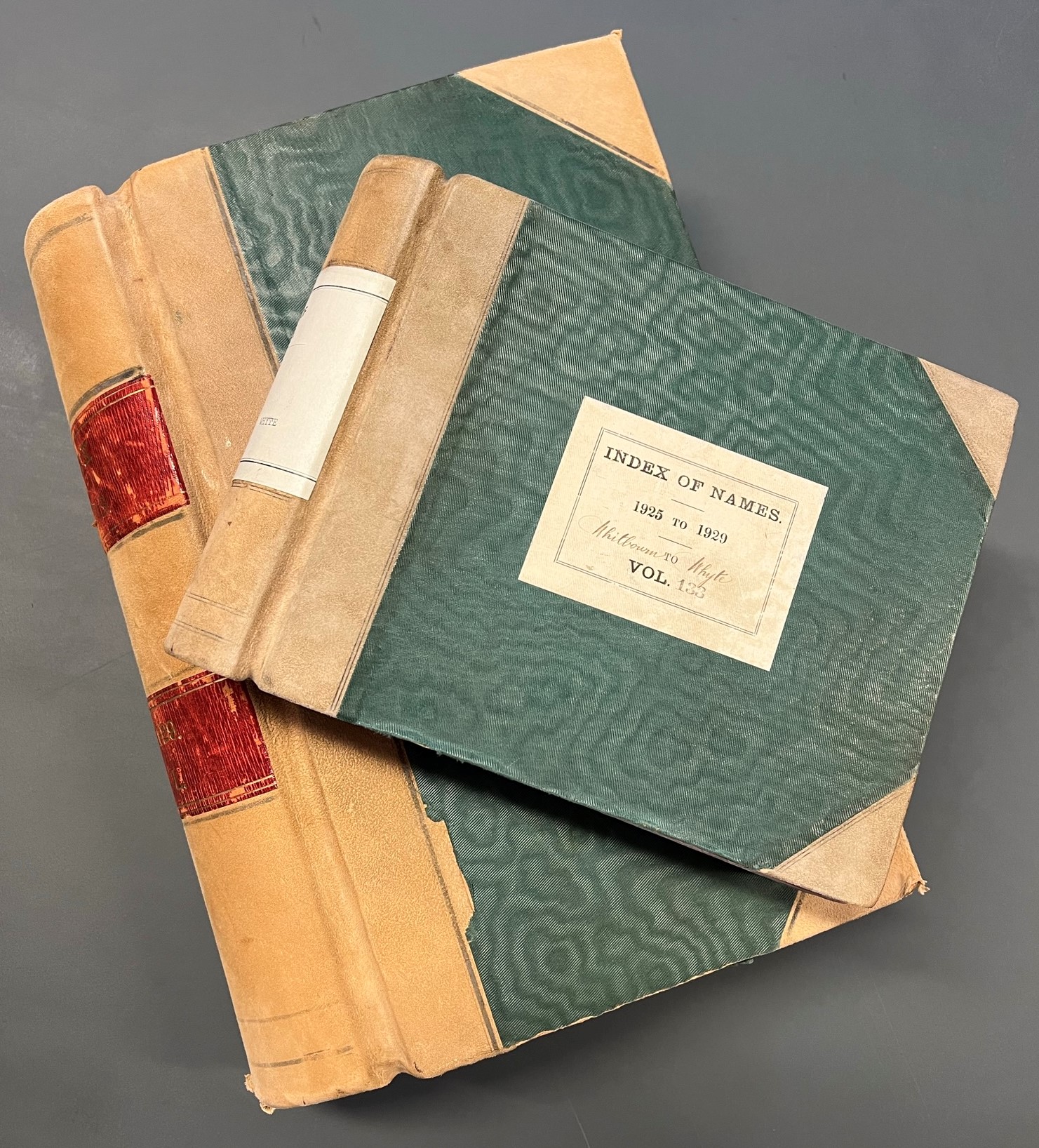 After 1885, the original index books known as indexes of names (parties) and lands (places) are accessible as bound volumes in the Archives search room and may be searched self-service by prior appointment. The original, large green-leather-bound deeds volumes are held in a separate store and are retrieved on request by search room staff.