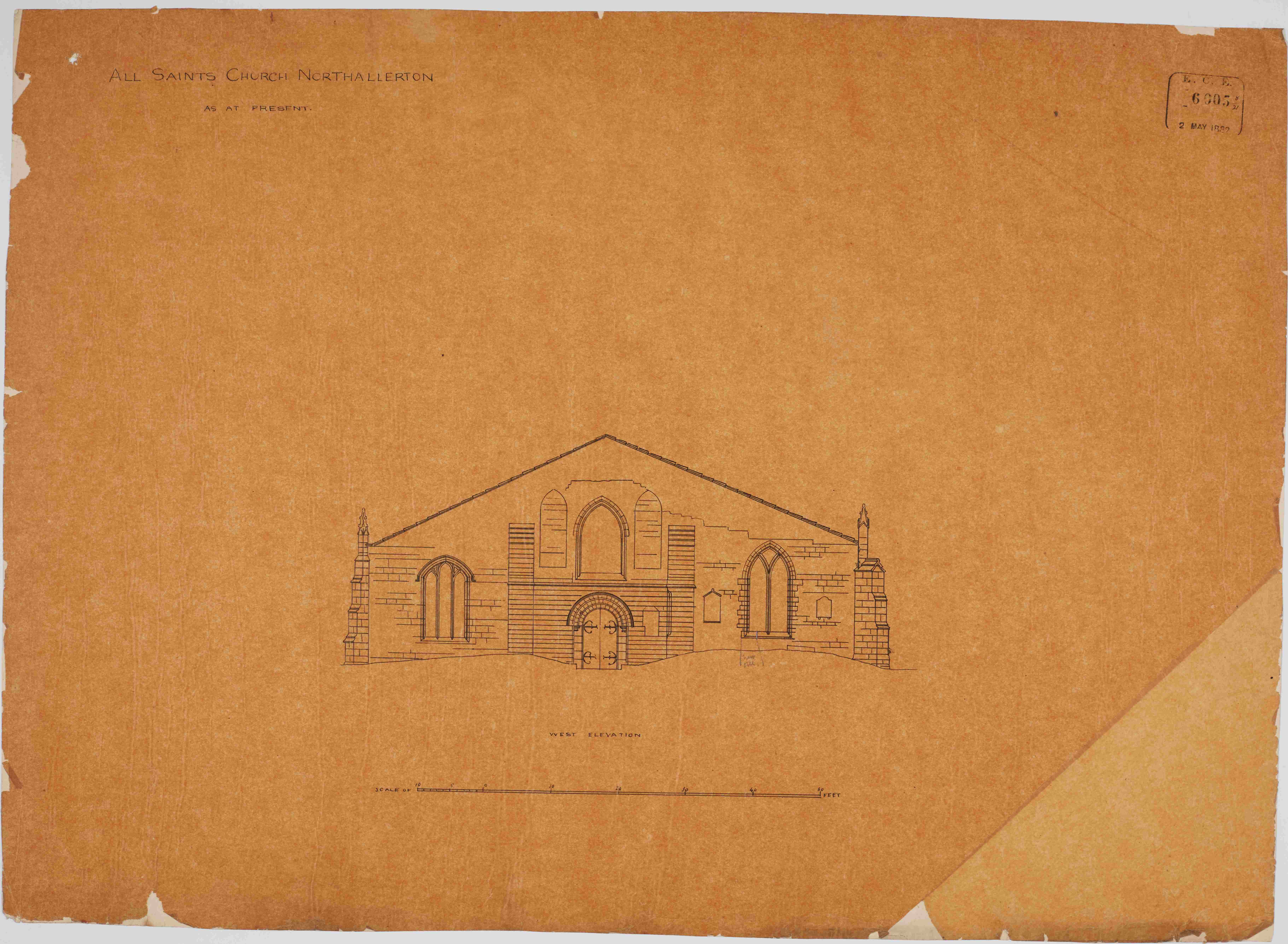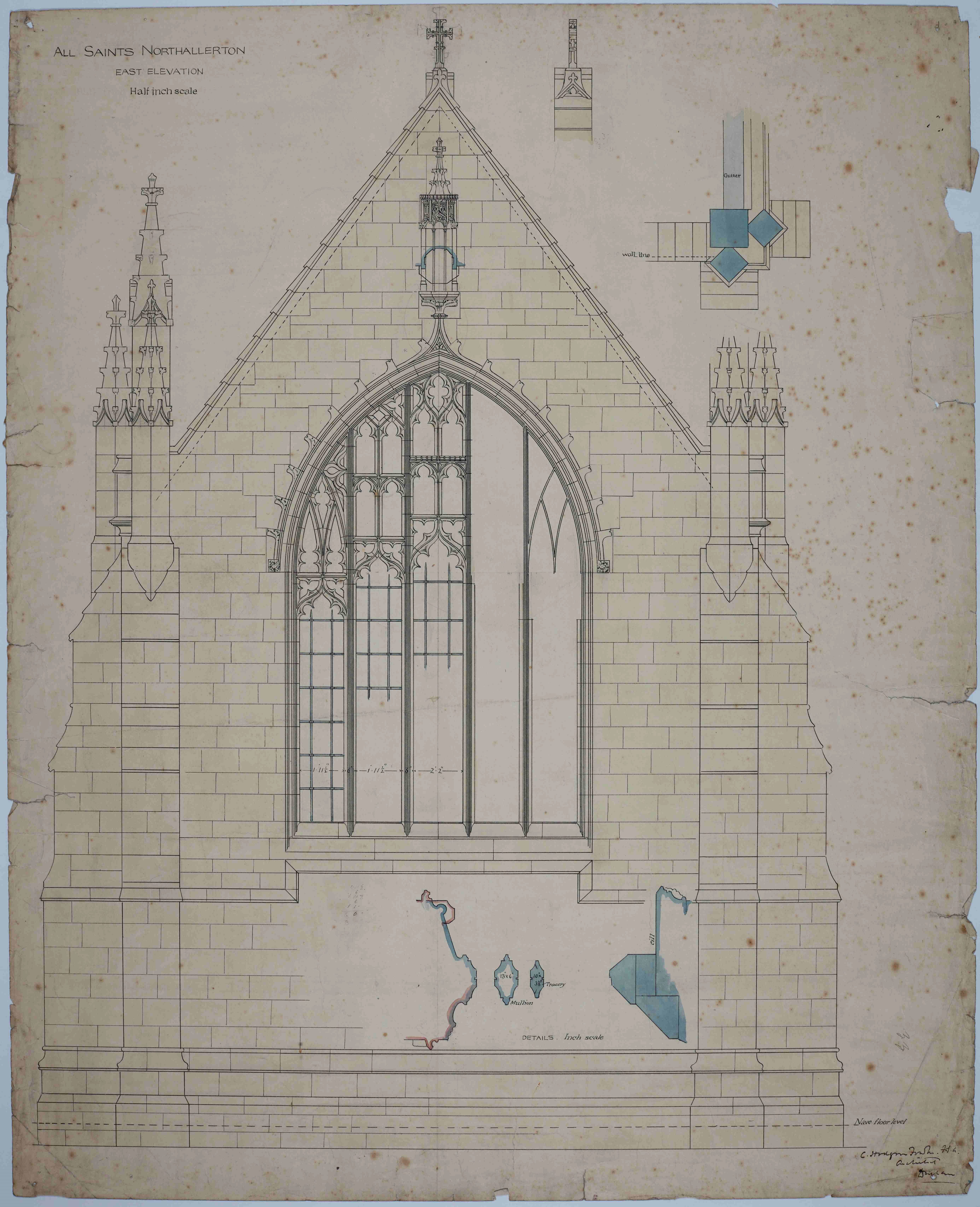 Lithographs of Northallerton, All Saints as featured in The Building News, 22 May 1883 [EE76/106] and ‘Design for new chancel and restoration of Northallerton Church, C. Hodgson Fowler. F.S.A Architect’ in The Building News, 30 November 1883 [EE76/105] plus east elevation drawing by Fowler, undated [ZRA 48 (viii)]