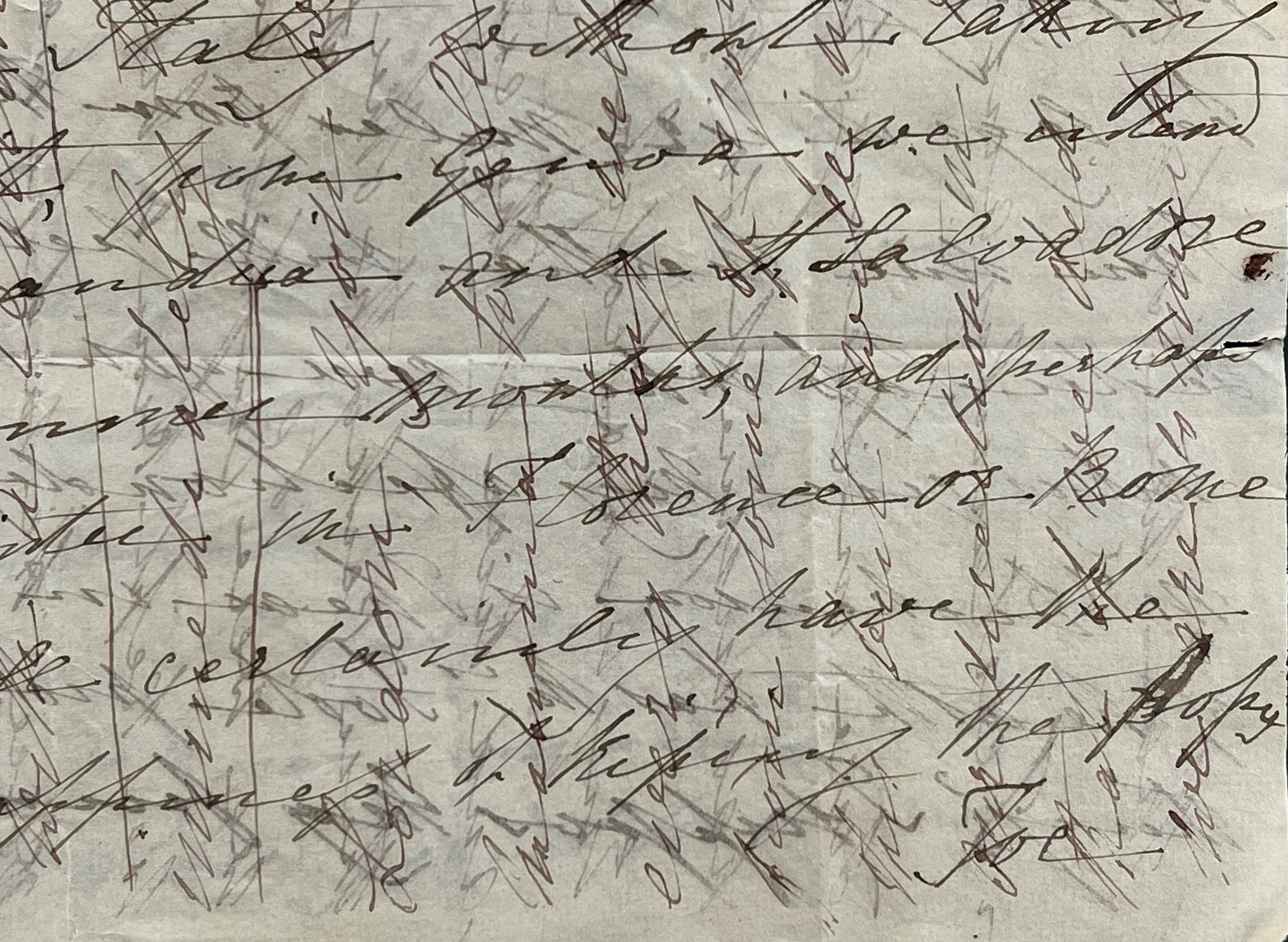 Detail of letter from Mrs Fuller to her mother in Ireland, 12 Feb 1837, in which she mentions her hopes of travelling to Rome to kiss the Pope’s toe [ZMO 27]
