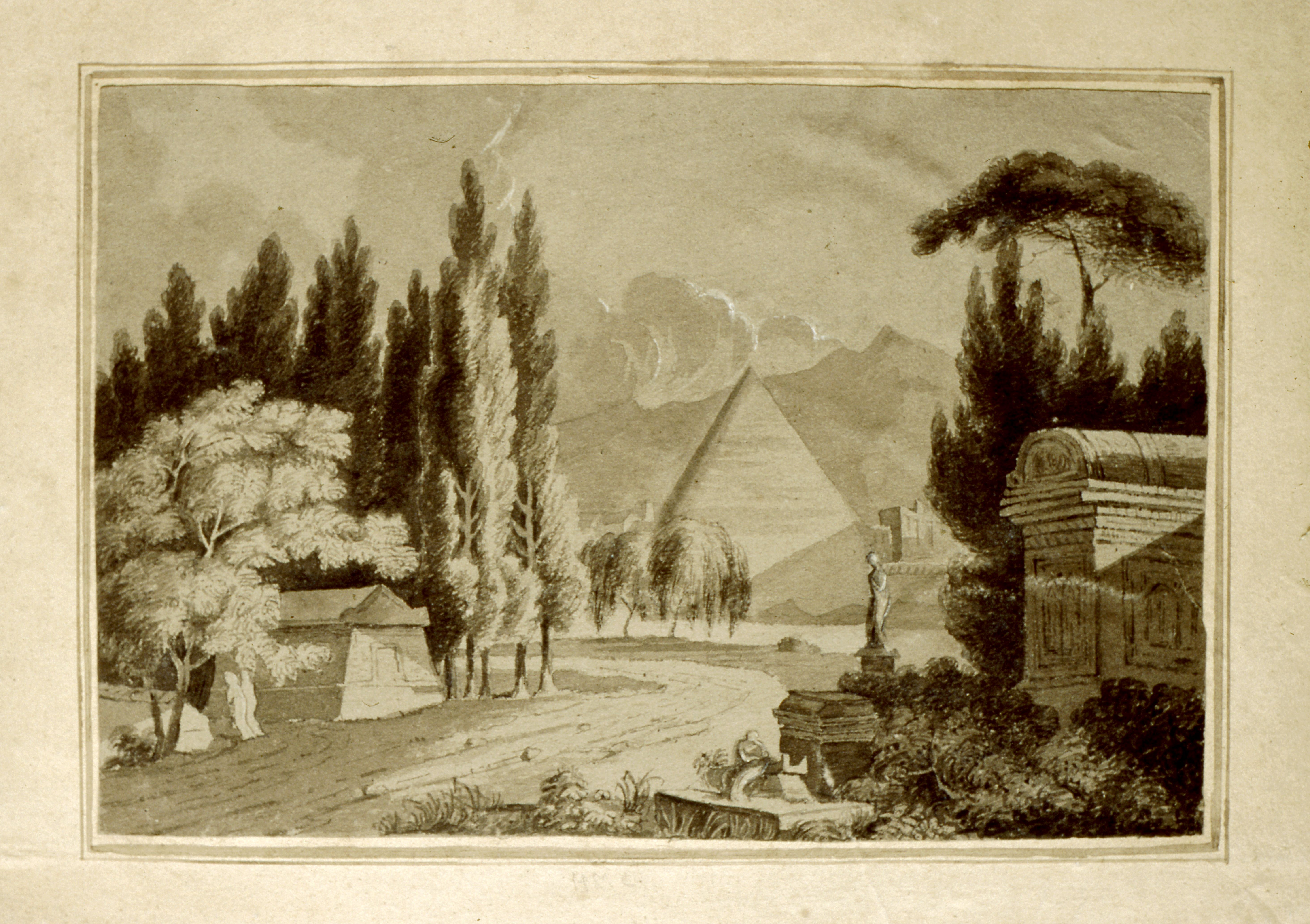 Study of Roman tombs, pyramids and cypress trees by Henrietta Matilda Crompton, 1812 [ZCM]
