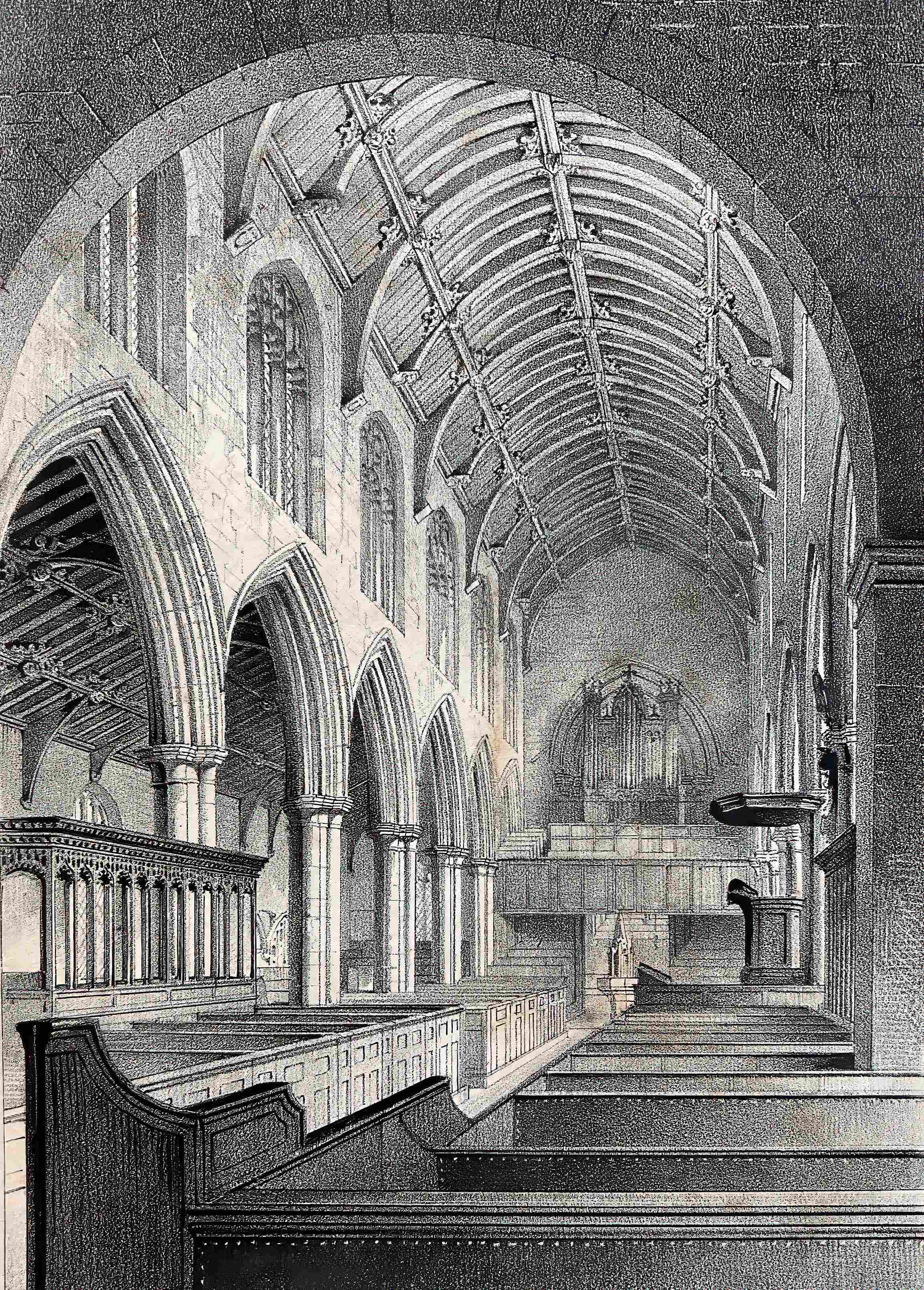 Like many churches, St Mary’s went through a period of restoration during the late-19th century. Lithographs and drawings from c.1840 held in the parish collection show us what the interior looked like by the early-Victorian era. During the 18th century, the nave was filled with box pews facing the pulpit which had been located on the northside of the nave. These images also suggest that the chancel arch may have been rebuilt in the Georgian era. It is distinctly Neoclassical in appearance and certainly not 15th century. The original arch may have had a structural failure and thus needed replacing, although we do not know for sure.
