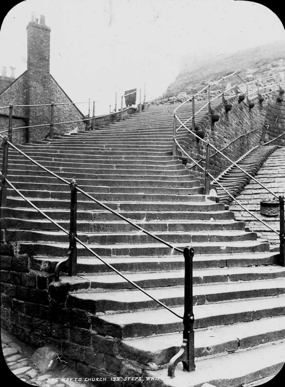 Whitby’s steps were first recorded in 1340, though they are likely much older. Before the graveyard closed to new burials in the mid-19th century, it was traditional for the deceased to be carried up the steps to the clifftop churchyard instead of using the road.